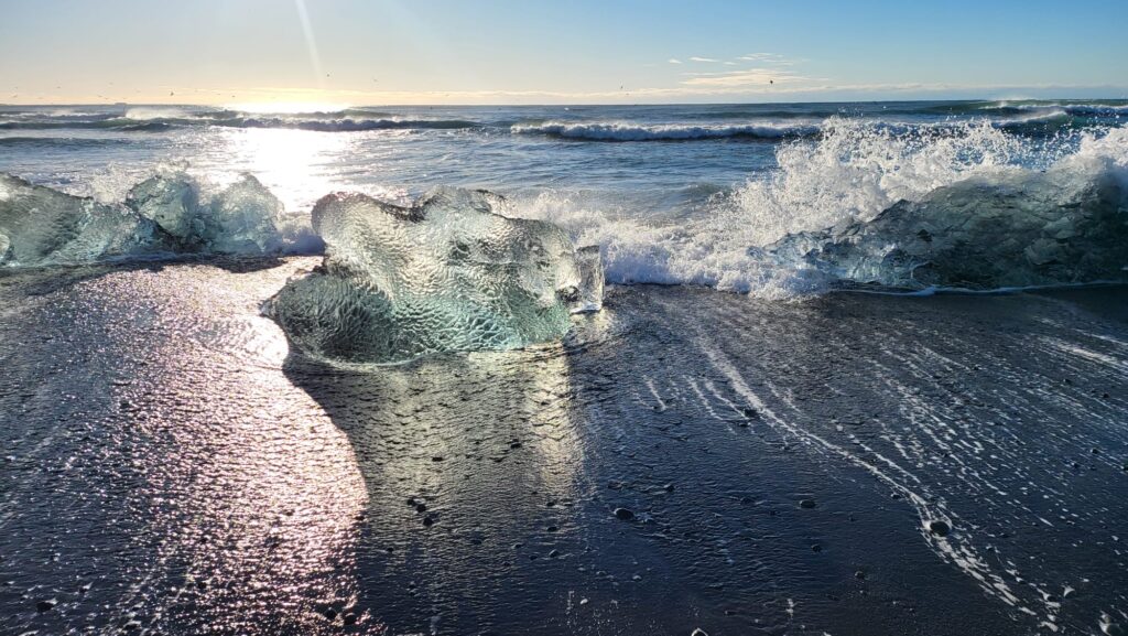 Una delle esperienze più memorabili del mio viaggio è stata un’escursione sul ghiacciaio Vatnajökull. Indossare i ramponi e camminare su una lingua di ghiaccio, circondata da crepacci e formazioni glaciali, è stato come entrare in un’altra dimensione. Ho scoperto un mondo di bellezza e fragilità, un lato dell’isola che merita di essere ammirato e rispettato. Per non parlare della laguna glaciale di Jokulsarlon, piena di iceberg e la spiaggia dei diamanti… uno spettacolo della natura che mi ha lasciata senza fiato!
